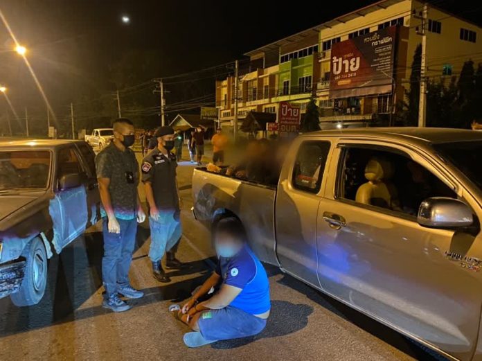 The group, consisting of 16 women and 18 men, were arrested along with two guides aboard two pick-up trucks in front of Suan Phung Subdistrict Municipal Office in Ratchaburi.