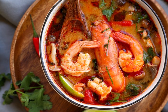 As for tom yam kung, CNN Travel says, “sweet, sour, spicy, and salty, this soup’s magnificent broth is the ideal foil for sweet, tender shrimp. Aromatic ingredients include galangal, lemongrass, and lime leaves, while slivers of bright red bird’s-eye chilies add additional heat.”