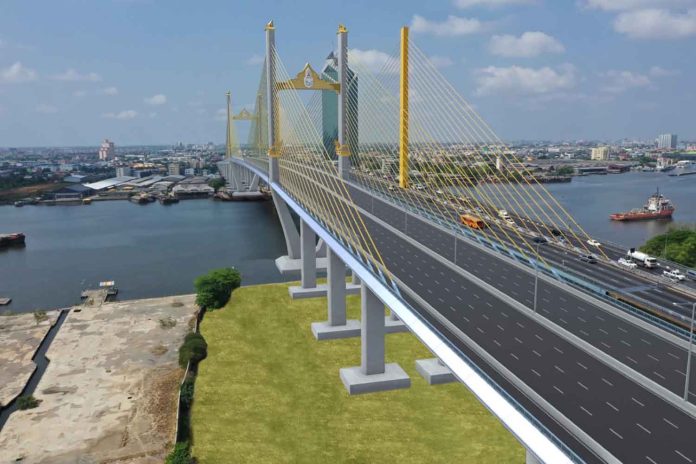 The Expressway Authority of Thailand (EXAT) has provided updates on the construction of the Chao Phraya River’s widest cable-stayed bridge, which is scheduled to open in 2023.