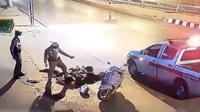 The deputy crime suppression chief of Sam Phran station, Pol Capt Chaiyapoj Khotsamrarn and Pol L/C Phanadorn Changkhian have been suspended under investigation for allegedly abusing two handcuffed teenagers.