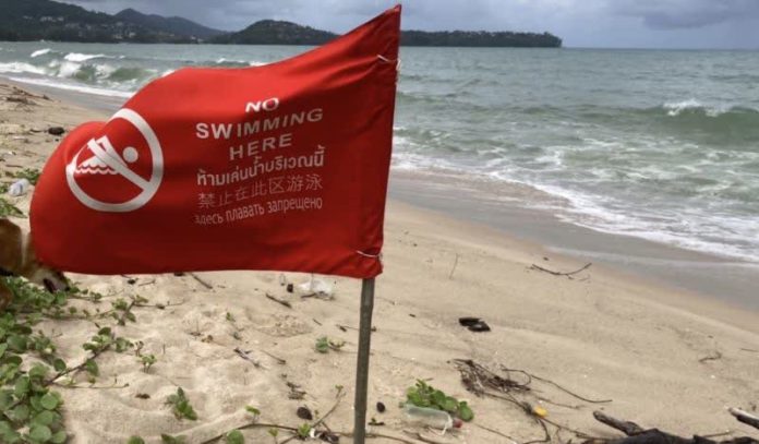 Red flags have been raised along the beaches of Phuket to warn beach goers against entering the water due to intense winds and waves.