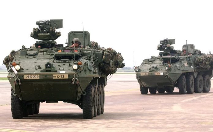 The Stryker is a family of eight-wheel-drive combat vehicles manufactured by General Dynamics Land Systems – Canada and the General Dynamics Land Systems Division in the United States for the U.S. Army.