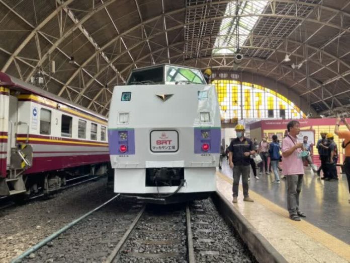 On Tuesday (6 Sept), SRT governor Nirut Maneephan led members of the press on a test run of the renovated Kiha 183 passenger train carriages that arrived from Japan in December of last year. Participants were able to ride the train on its trial route, which began at Bangkok’s Makkasan maintenance yard and ended at Hua Lamphong station.