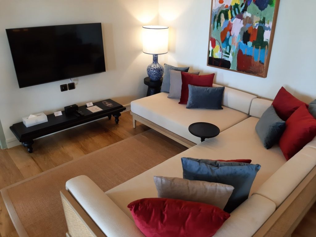 His ability to combine modern needs (internet access, Smart TV use) with the timeless nature of his family history is truly remarkable.His eclectic sense of style sees him juxtapose an intricately adorned cover for a monk’s bowl opposite an abstract canvas painted in bold fluorescent colours. This beautiful property is full of surprises, from the volcanic rock from Bali that lines the turquoise pool to the historic louvre doors in many of the suites that were saved from a renovation of the Thai Parliament building in Bangkok.