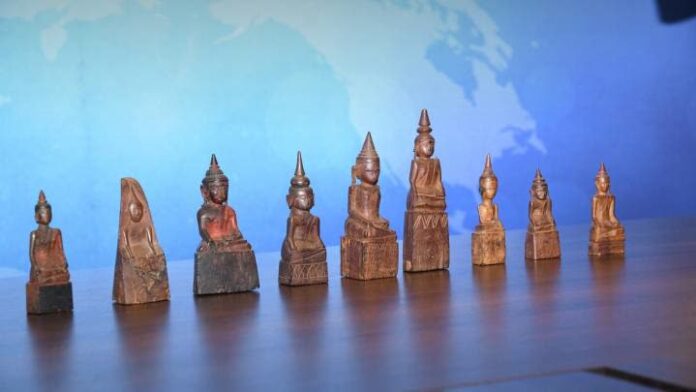 The Foreign Ministry has scheduled a ceremony to give over the nine wooden Buddha sculptures to the Fine Arts Department. Nathapol Khantahiran, Deputy Permanent Secretary for Foreign Affairs, and Sathaporn Thiangtham, Deputy Director-General of the Fine Arts Department, were also present during the transfer ceremony.