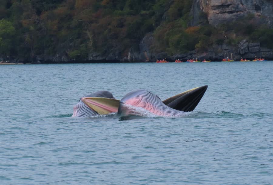 A rare Bryde’s whale and its young were discovered earlier this week in Mu Ko Ang Thong National Marine Park in Surat Thani province, and another was spotted close on Friday (3 Feb).