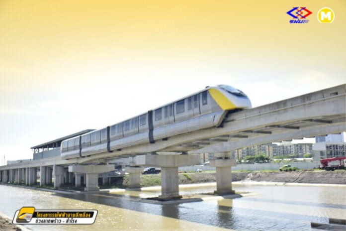 MRT’s Yellow Line—Pink Line will be tested in April before beginning service this year with free rides. The starting fare is 14 baht.