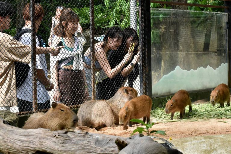 With the arrival of the new cubs, Khao Kheow Open Zoo now has a total of 14 capybaras, including 10 females and 4 males. Capybaras are known as the largest rodents in the world and are native to America. They have light brown coarse hair, webbed feet for swimming, and do not possess a tail. Capybaras give birth to 2-8 young and can be found in grasslands, rainforests, and near swamps, rivers, and lakes in Central and South America.