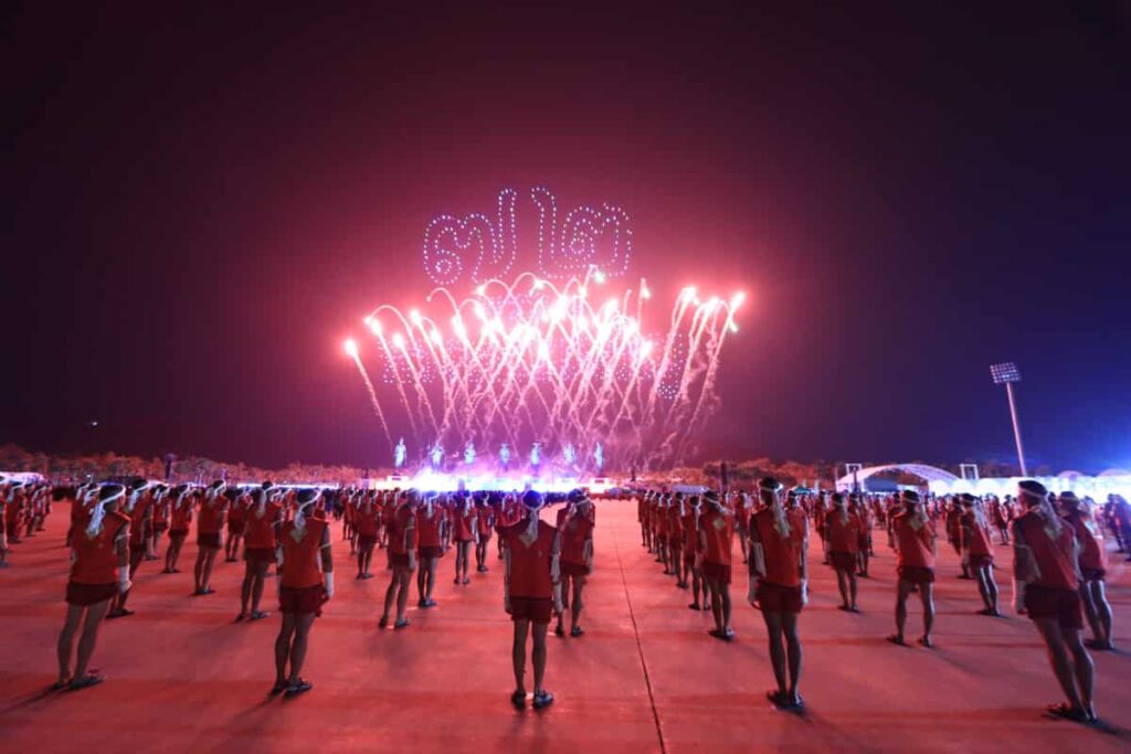 The final act, “Preserving the Art: Thai Boxing Salutation to Mentors, Mother of Muay Thai, Transforming Drones into Letters, Dazzling Lights,” was a breathtaking presentation of the artistry of the Muay Thai Wai Kru and a display of reverence. The performance incorporated over 700 drones, concluding with a grand fireworks display.