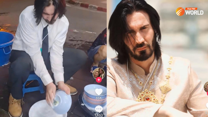 Over the weekend, videos surfaced on the TikTok account “Tuktiklife,” showcasing the foreign man engaged in various activities, from selling noodles to roasting squid, and even washing dishes at a restaurant in Bangkok. His uncanny resemblance to the famed John Wick character, complete with similar hair, beard, and attire, immediately caught the attention of viewers.