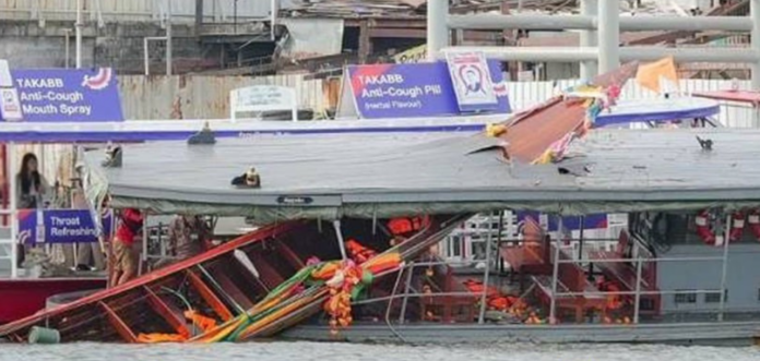 In the bustling waters of the Chao Phraya River in Bangkok today, a collision unfolded between a long-tailed boat ferrying Chinese tourists and a ferry, resulting in injuries to three individuals. The incident took place close to the Phra Chetuphon Wimonmangkalaram Ratchaworamahawihan Temple, familiarly known as Wat Pho.