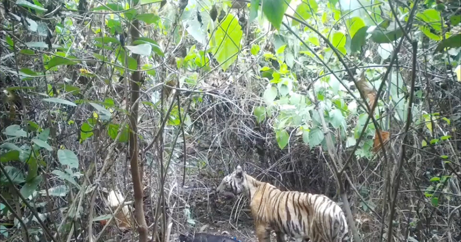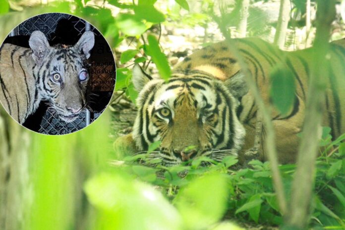 A thin, left-eye blind tigress, which had previously wandered out of Mae Wong National Park and onto a road in a Karen village at Moo 18, Khlong Lan Phatthana Subdistrict, Khlong Lan District, Kamphaeng Phet Province on February 16, has returned to the forest in Prachin Buri Province as of June 6.