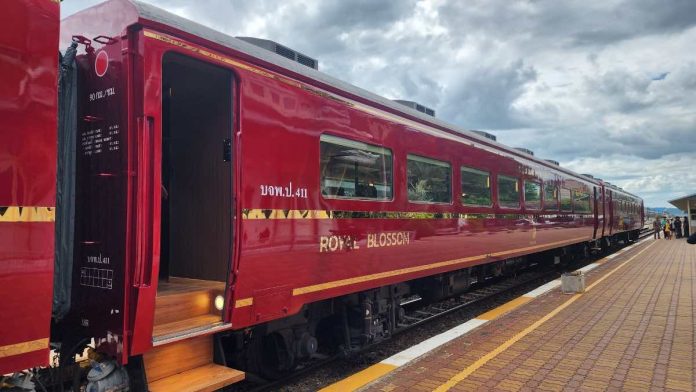 The SRT Royal Blossom, originally gifted by Japan, has been transformed into a tourist train with the first set of five carriages completed. The train, refurbished entirely by Thai craftsmen, features recreational facilities and extra-wide windows designed to maximize scenic views along the route. A café onboard enhances the travel experience, ensuring tourists feel fully immersed in their journey.