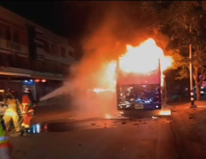 A tourist bus carrying 50 Indonesian visitors caught fire in Pak Chong, Nakhon Ratchasima, on the evening of October 16, 2024. Fortunately, no one was injured, as the passengers had left the bus minutes earlier to have dinner at a nearby restaurant.