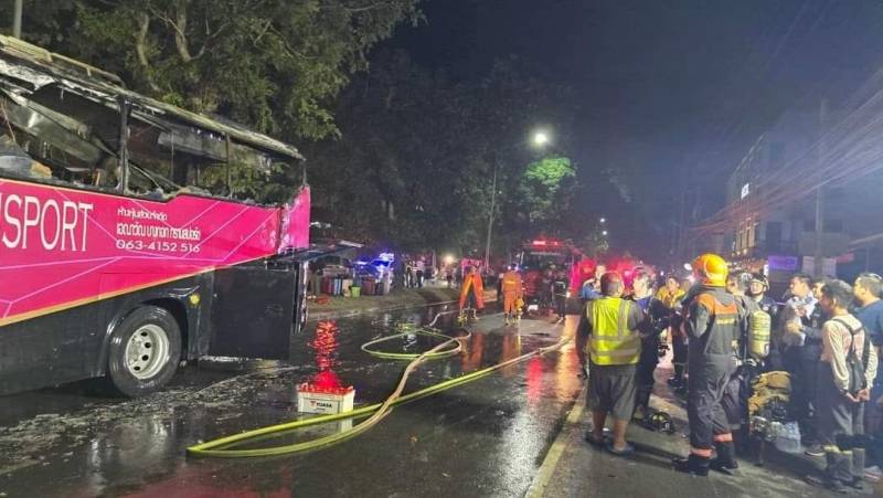 Authorities, including Pol. Lt. Col. Suraphat Phadee, Deputy Inspector of Pak Chong Police Station, responded swiftly. Fire trucks from Pak Chong Municipality and nearby areas were dispatched to the scene, successfully extinguishing the flames within 30 minutes. Despite the significant damage to the bus, the tourists’ luggage and belongings were mostly unaffected, with only minor water damage reported.